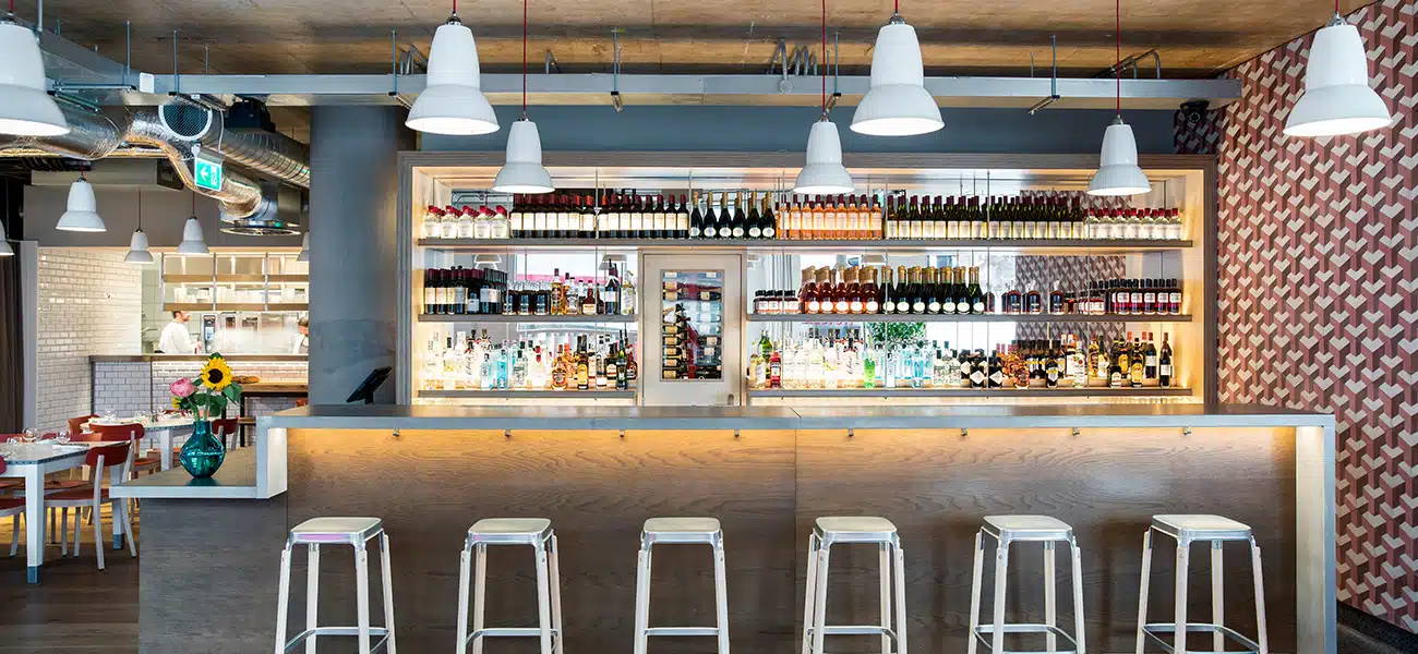 Located on the iconic Turnmill site in the heart of the Clerkenwell design district, the new Albion restaurant, (the largest to date), is a celebration of Britain and the local area in every sense – from the artisan produce on the shelves and seasonal ingredients in the kitchen to the design of the space itself, down to the smallest detail. Open from breakfast though brunch and lunch to supper, the new site also incorporates a takeaway foods, hot drinks and juice bar, a well stocked bakery, a craft beer and wine shop, an oyster bar, a cheese and charcuterie corner, a cocktail bar and a pie room. Multiple Anglepoise® Original 1227™ Pendant, Desk and Wall Mounted Lights dominate the entire ground floor space, complemented by furniture from Ercol, Benchmark and Bethan Gray.