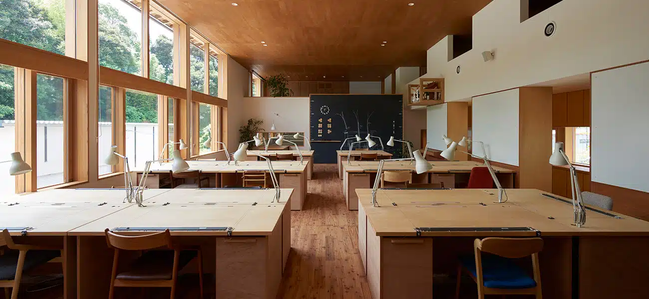 A series of Alpine White Type 75â„¢ Desk Lamps with inserts are used to light up the desks of a local building company’s office in Kagoshima.