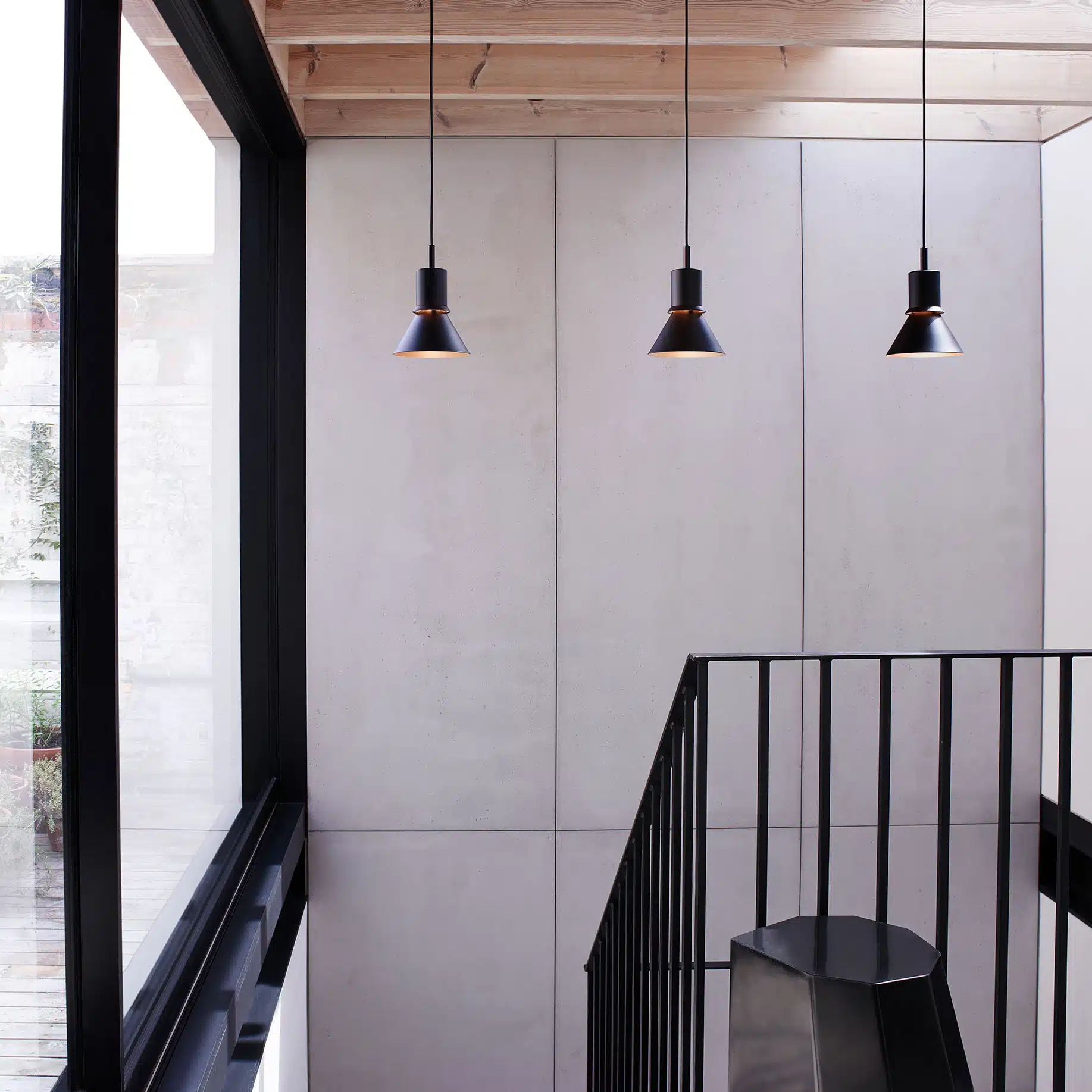 The Type 80™ pendant has a striking, graphic profile and features an attractive ‘halo’ light-escape in the shade. Every detail has been carefully considered and precision engineered to deliver streamlined style and ease of use, including a clean, contemporary ceiling rose.