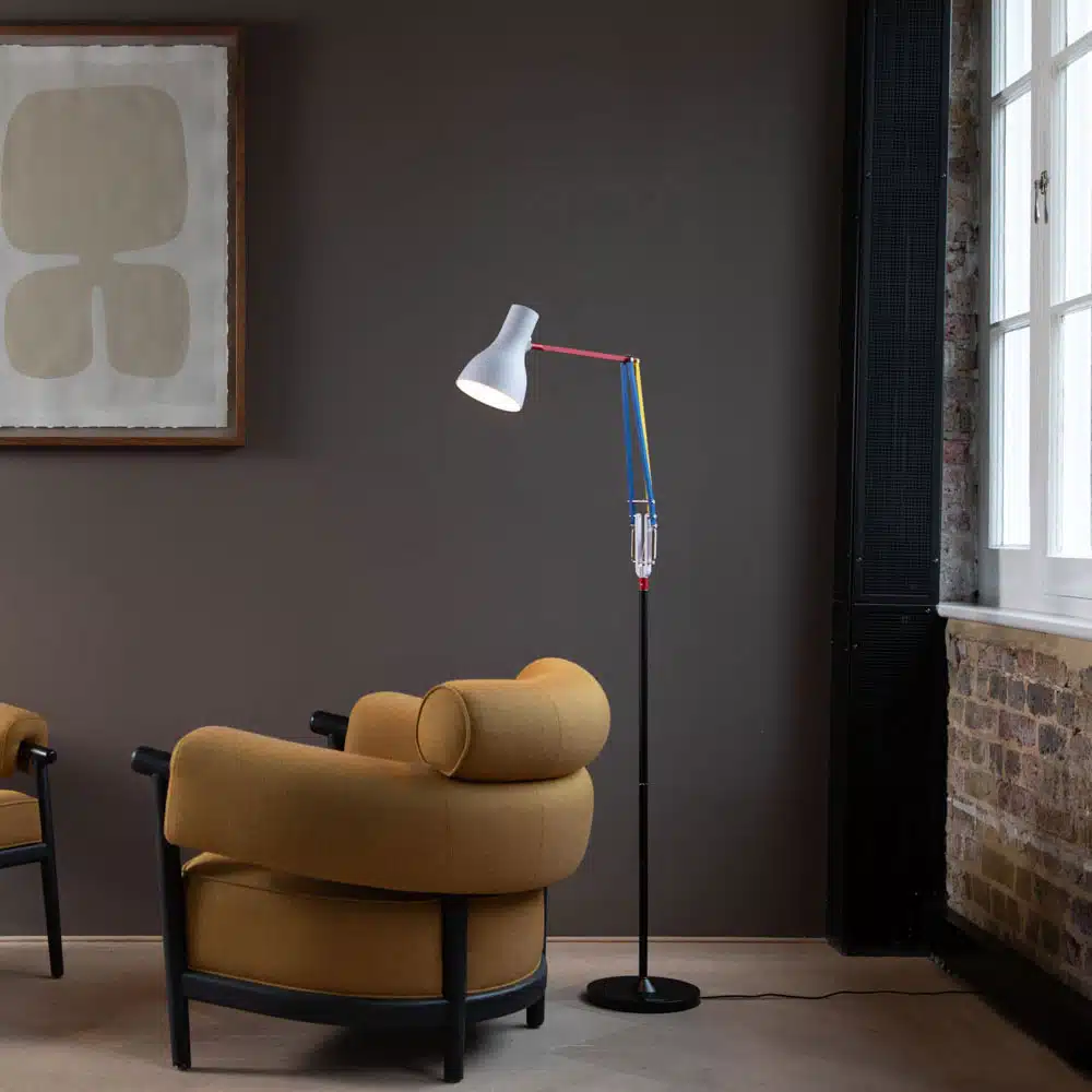 Starting with the iconic Anglepoise Type 75 desk lamp, celebrated designer and master of colour Paul Smith, created the Type 75 Mini Desk Lamp – Edition Three, inspired by the bold, archetypal colours of Mondrian’s De Stijl. Now, we have applied the same design to a floor lamp for added flexibility and usage.